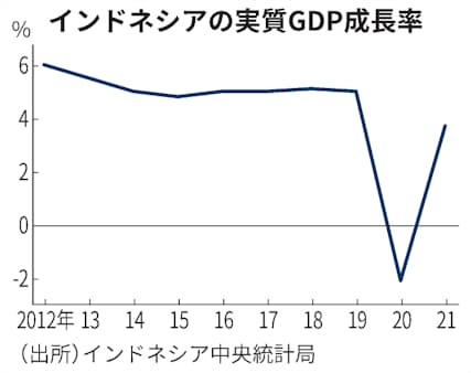 インドネシアの成長率プラス転換 21年、輸出が大幅増
