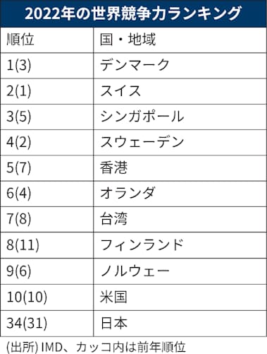 世界競争力、デンマークが首位 日本は過去最低の34位
