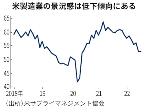 ISM指数は月間の米主要指標で最も早く公表され、景気の先行指標として注目度が高い。回答企業からは「多くの顧客が在庫を減らすために注文を控えている」(食品関連)、「10~12月期以降の受注に減速の兆しが見られる」(プラスチック関連)などの声が上がった。
