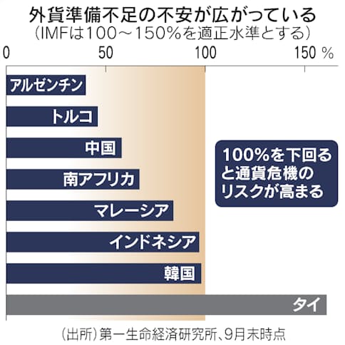 外貨準備高は通貨の防衛力を測る物差しだ。新興国は危機対応のため積み上げてきたが、足元でその水準に懸念が生じつつある。