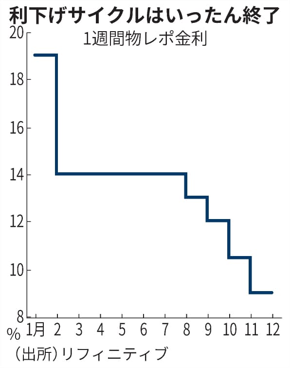 【イスタンブール=木寺もも子】トルコ中央銀行は22日、金融政策決定会合を開き、主要政策金利の1週間物レポ金利を年9%で据え置くと決めた。11月の会合で、それまで続けていた利下げを完了したと明らかにしており、その路線を踏襲した。政労使は同日、最低賃金を1年前の2倍にすると決めた。80%を超えるインフレが収まるかは見通せない。