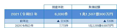 2021年(令和3年)の全国企業倒産6,030件